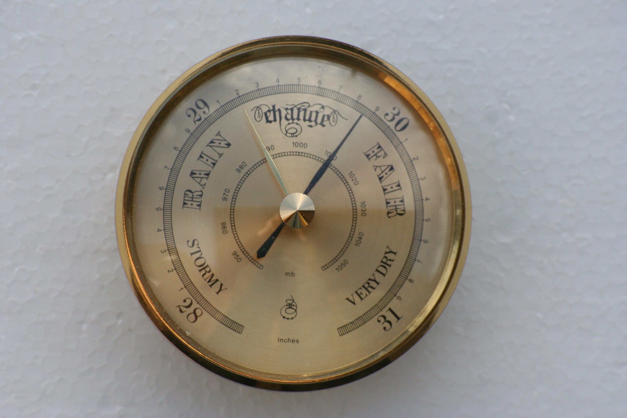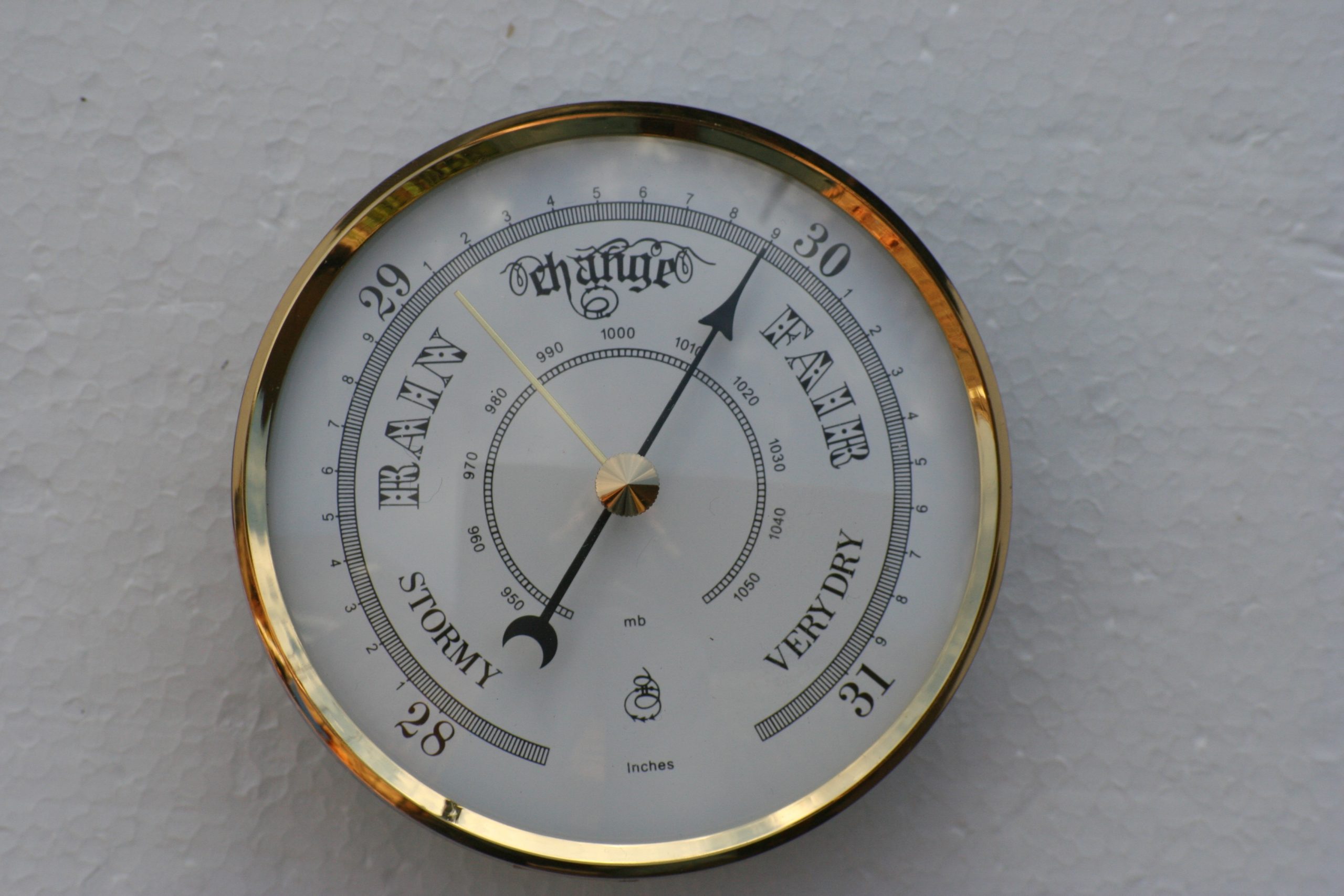 100mm diameter barometer insert, fits a hole 60mm diameter 20mm deep. Available with brass or white dial. German manufacture.
